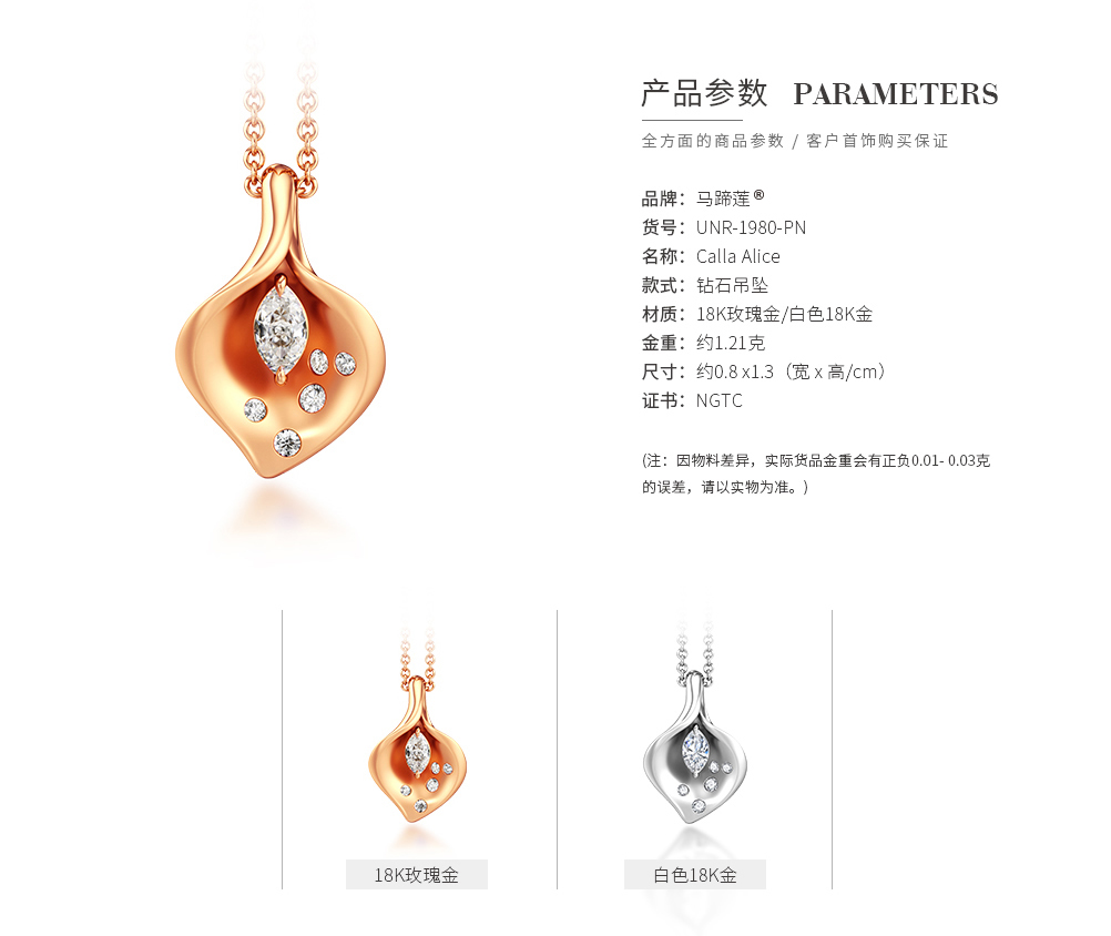 ALICE > Global National Flower > Calla lily® series > 【Calla Lily®】18K Rose Gold Diamond Pendant
