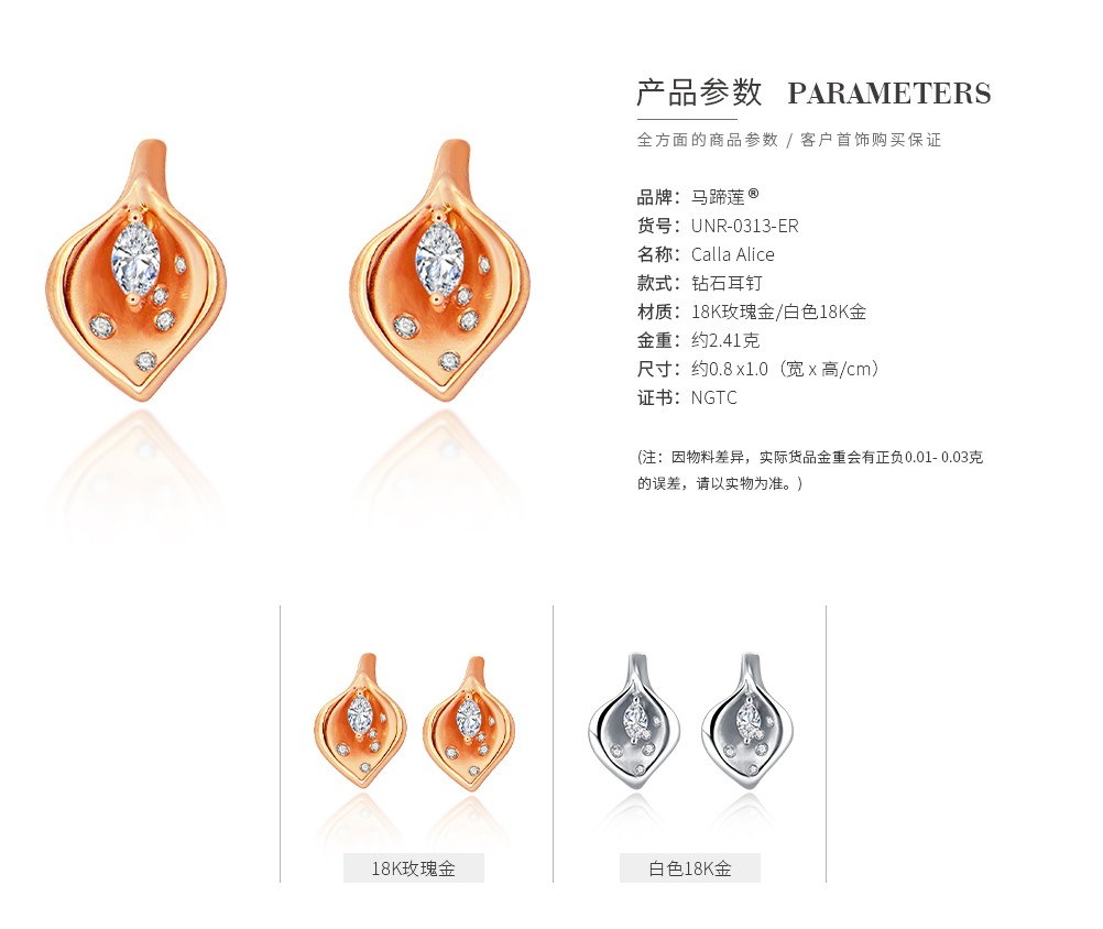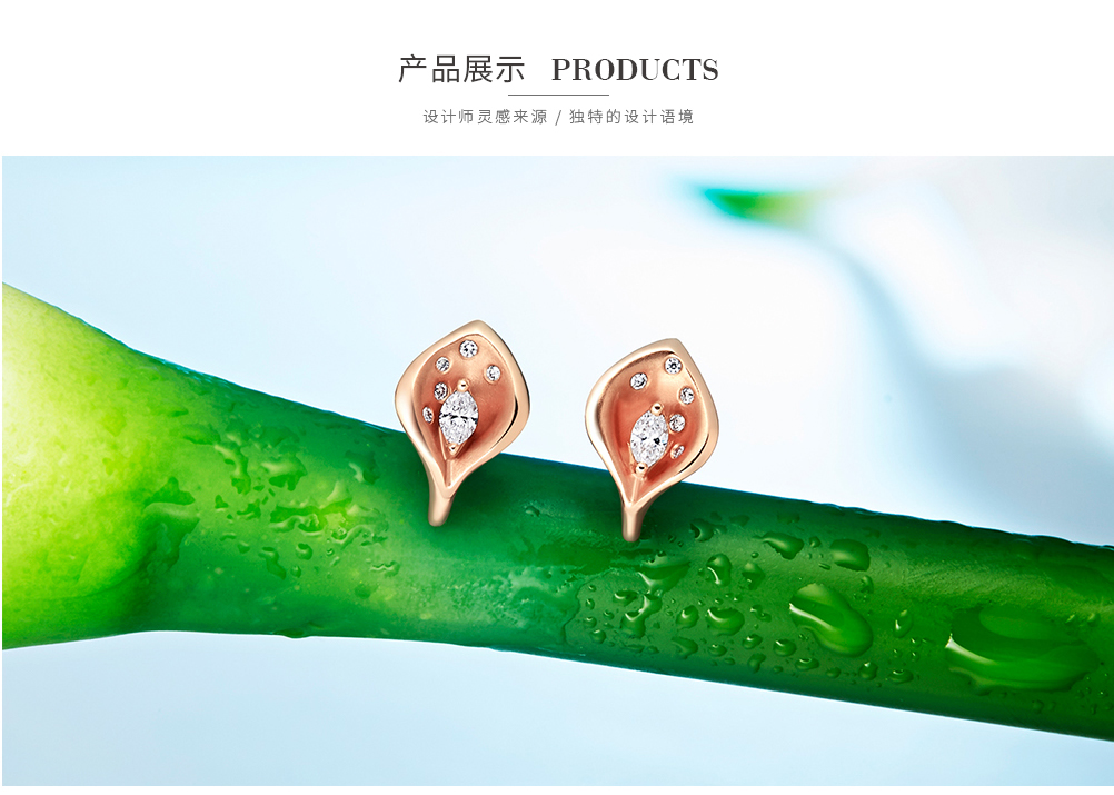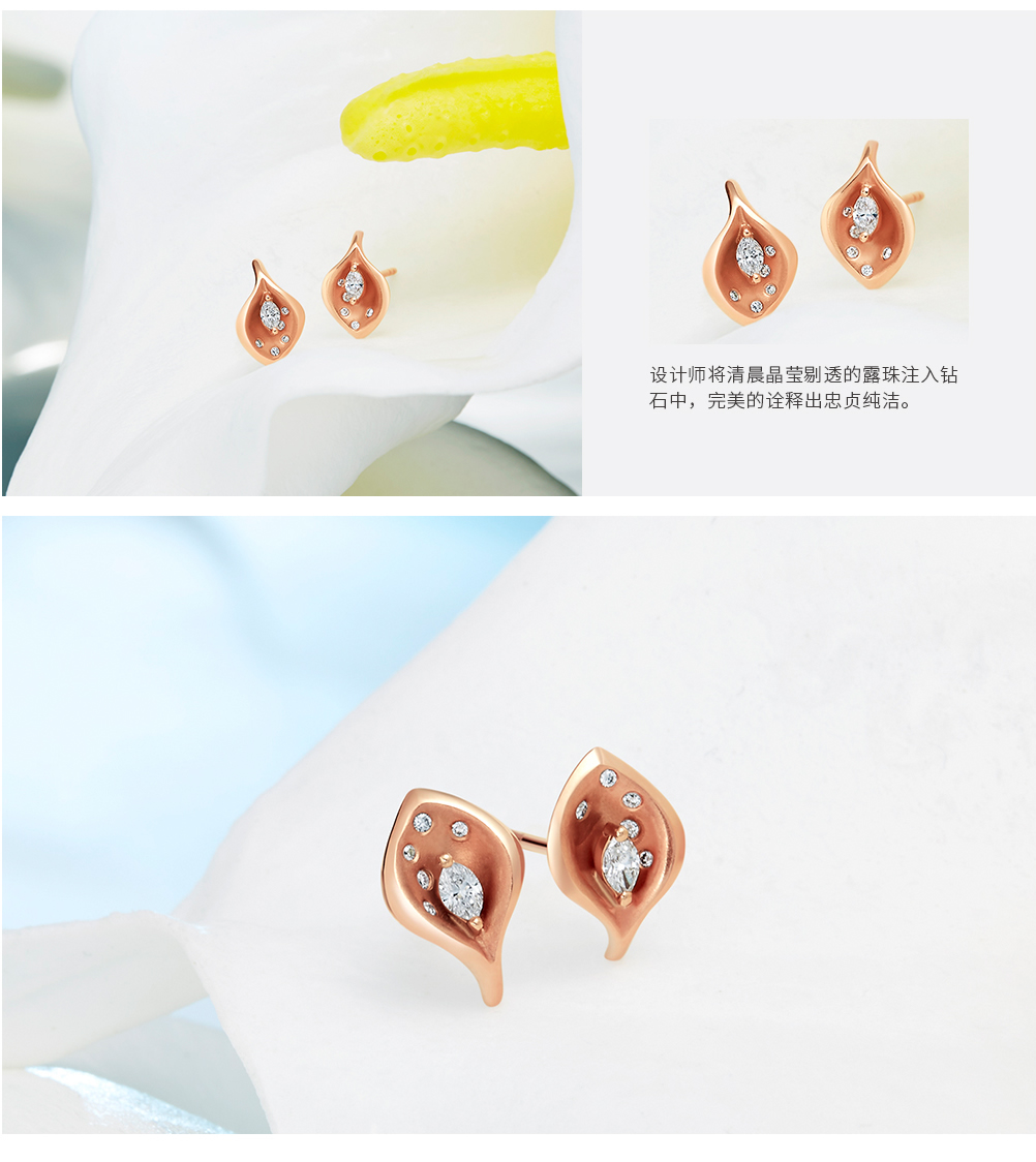 ALICE > Global National Flower > Calla lily® series > 【Calla Lily®】18K Rose Gold Diamond Earrings