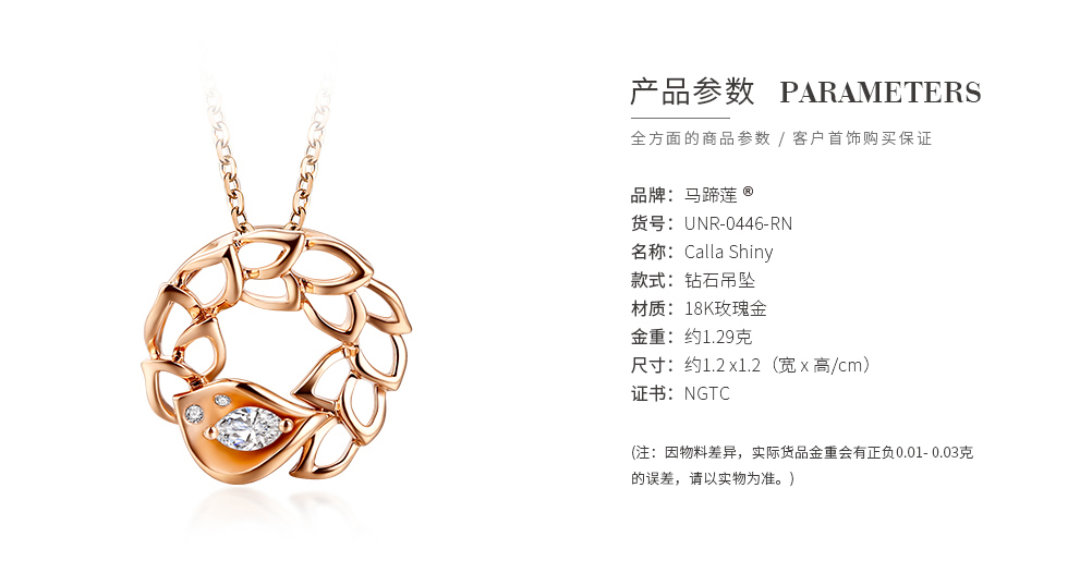 【Calla Lily®】18K Rose Gold Diamond Pendant