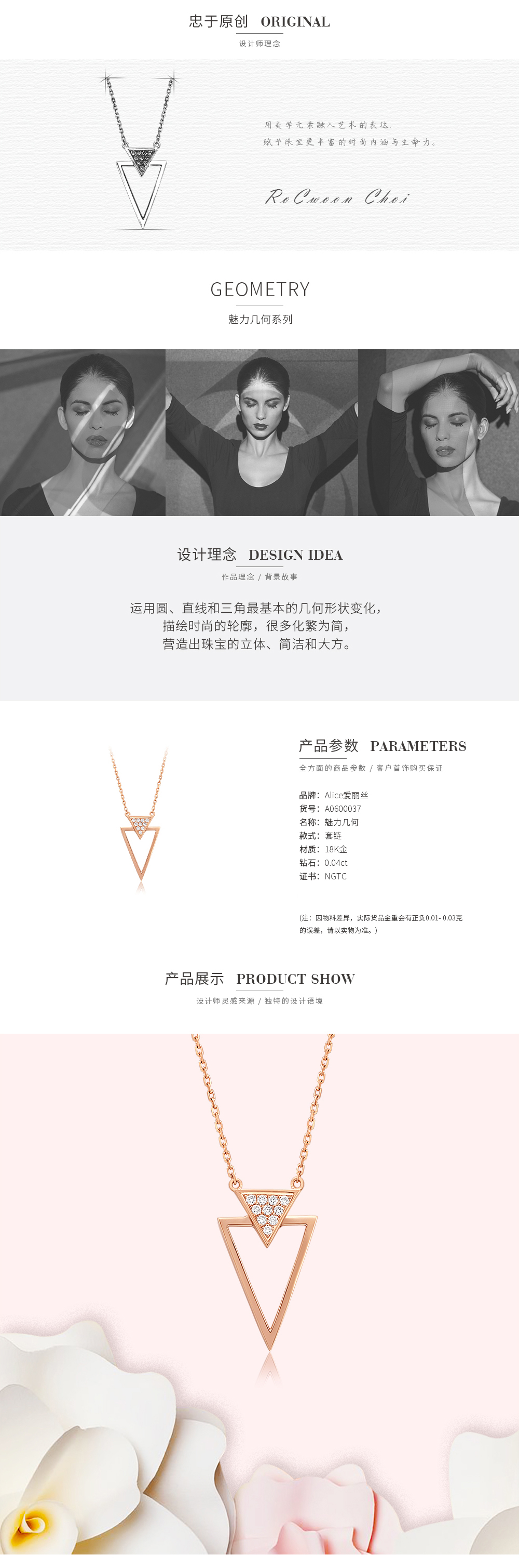 ALICE > International designer > KOKO series > [KOKO Series] Triangle 18K Gold Diamond Necklace