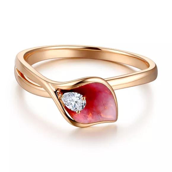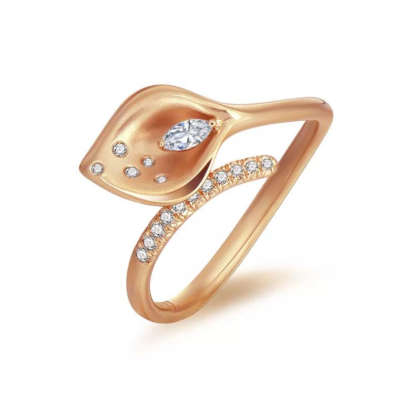 以马蹄莲花和水滴形钻石的设计,结合大自然生机盎然的色彩,用精致的工艺,塑造出绝美的马蹄莲造型。