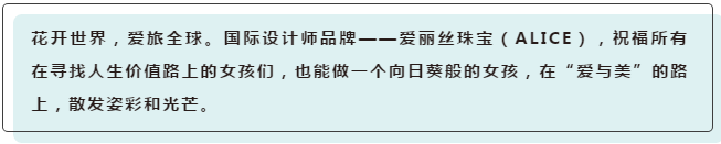 镜头之下的娄艺潇尽显摩登魅力,流露着ALICE爱丽丝珠宝所提倡的新时代女性精神:智慧、自信、乐观、品位。就像粉丝们对她的评价,她就是一个小太阳,当目光追随她的时候,积极向上的勇气,对未来世界的求知,一切就变得那么自然,一步一个脚印,扎实而深刻。
