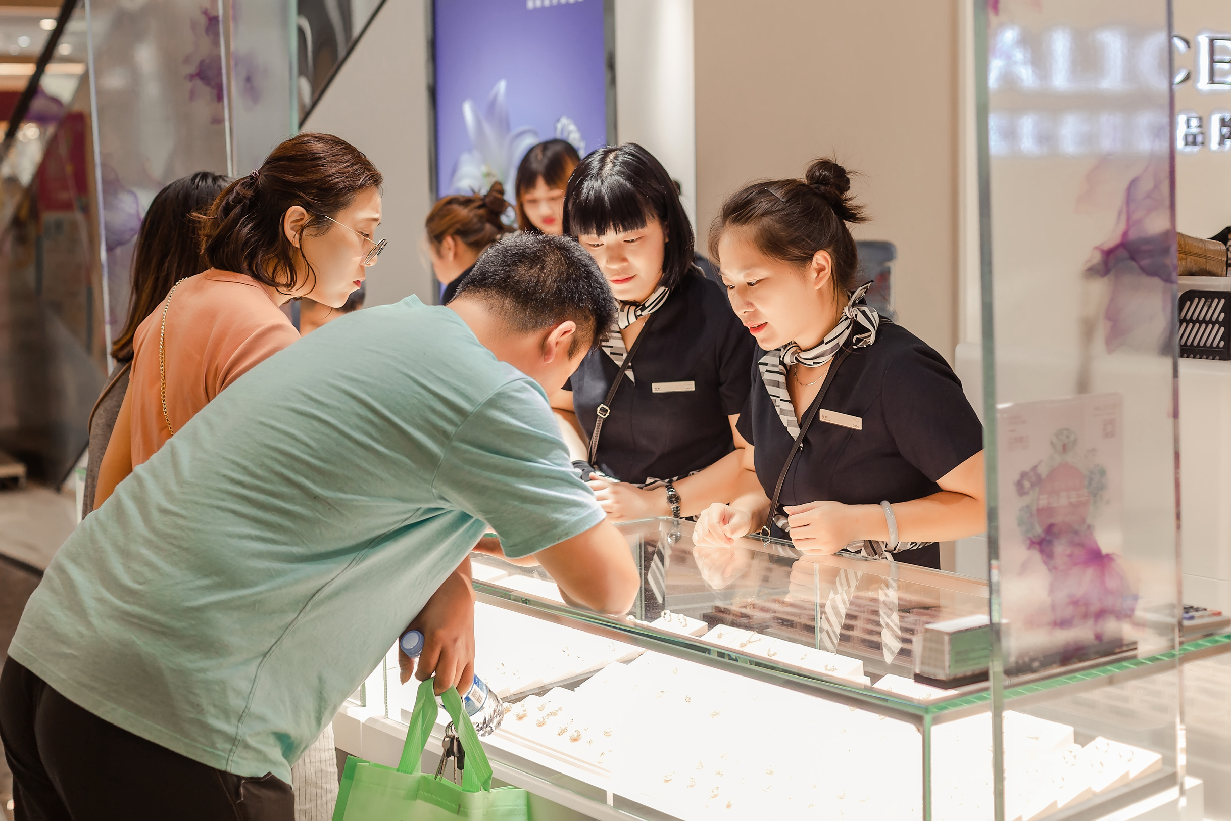 顾客选购爱丽丝珠宝