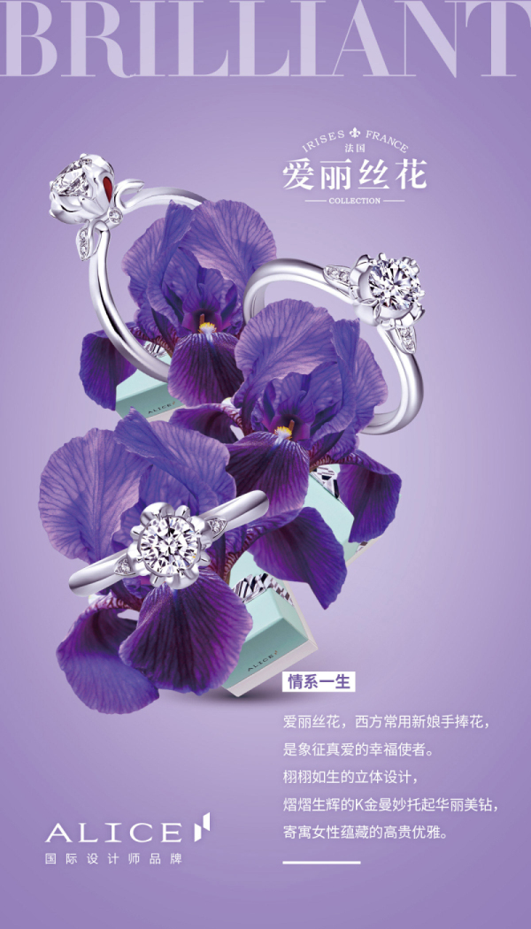 花,尤其国花,作为大自然予以国家、民族美好的馈赠,它赋予了人们向往的种种情怀,或热情或浪漫。那一朵朵花儿,又好像现代女性的一个个愿望,一个个梦想,承载着“爱”与“美”。所以,爱丽丝珠宝(ALICE)以“国花”为产品研发方向,根本要旨还是在于拉近消费者与珠宝的距离,实现个人“珠宝生活化,生活珠宝化”的格调生活追求。