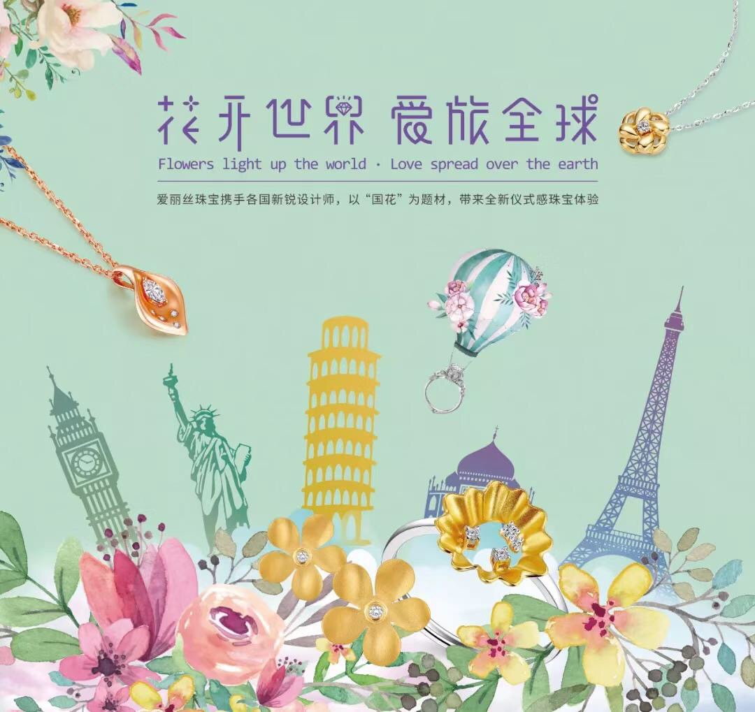 2018年,ALICE爱丽丝珠宝提出“花开世界 爱旅全球”主题概念