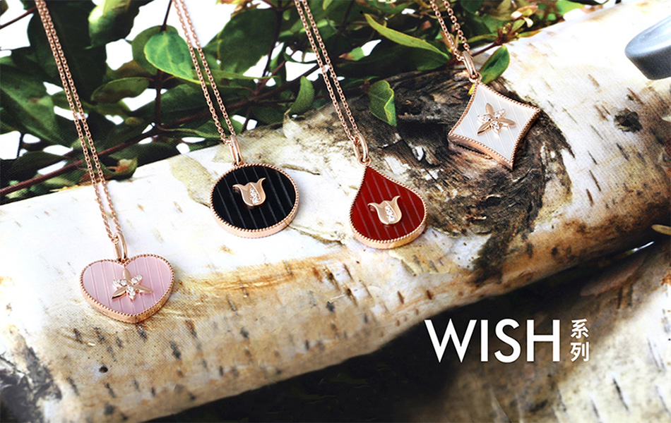 此次WISH系列新品采用时髦k金、红黑玛瑙与粉白贝母等极具灵性的自然材质打造。玛瑙是地球距今一亿年前形成的玉髓类矿物,而贝母则取自孕育生灵的贝壳中最纯净坚硬的内层,两种珠宝材质都有极强的元素亲和性。