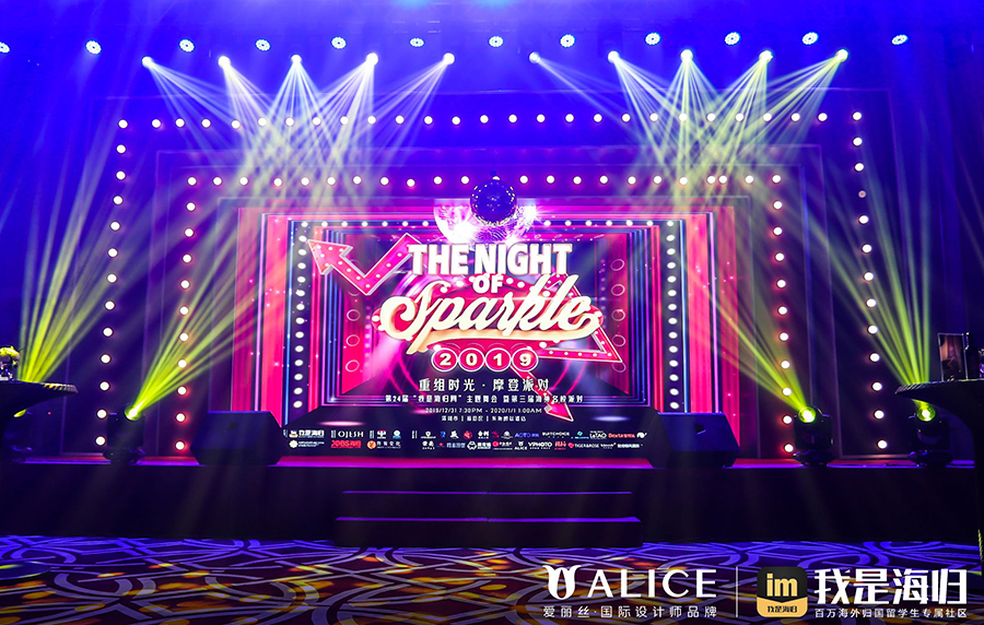 「2019 The Night of Sparkle」不仅仅是海归精英、高端人才的盛宴,也是高端、时尚、精致、有品位的消费者的盛宴。派对现场以“摩登复古”为主题,被打造成Disco舞厅的现场将经典年代的美好一次性打包。熟悉的音乐旋律,闪耀的霓虹光束,交织成一场跨年夜最璀璨的星光之梦。