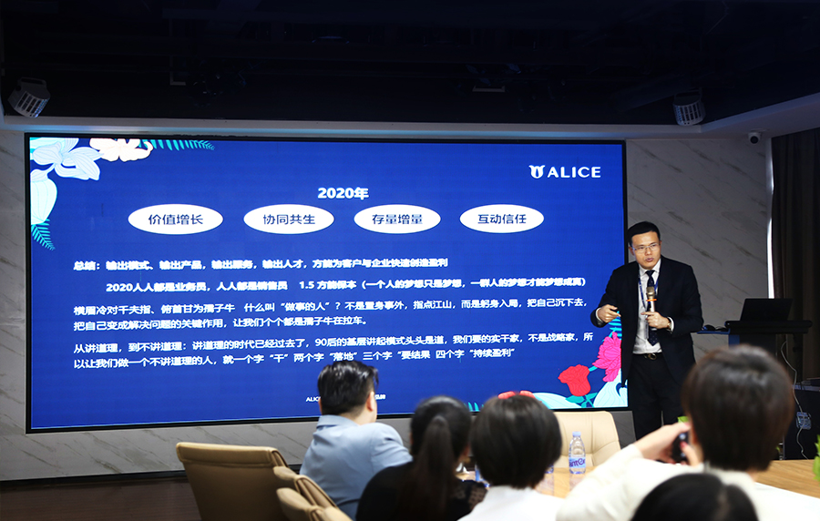 会上,爱丽丝(ALICE)珠宝郑国阵董事长发表了“爱丽丝珠宝2020年战略规划”主题演讲,宣布爱丽丝珠宝拓展部、商学院、品牌部、物流部等十个部门的发展方向与目标,同时把爱丽丝珠宝的发展与每个员工紧密联系到一起,希望所有的爱丽丝家人们更加努力拼搏,“不求一跃千里,但求日进一步”,在2020年,以“价值增长 协同共生 存量增量 互动信任”为总发展战略,一起稳步前行、厚积薄发,齐心协力实现爱丽丝花开满全球的伟大梦想。