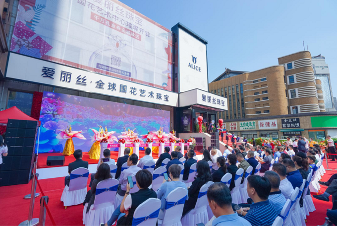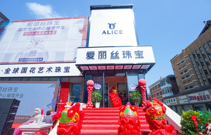 2020年9月6日,全球国花艺术珠宝ALICE爱丽丝首家艺术中心璀璨开业,爱丽丝珠宝国花艺术中心坐落于吉林省长春市重庆路与文化街交汇处,占地面积约1500平。爱丽丝珠宝国花艺术中心致力于打造成为长春市网红打卡新地标、情侣求婚圣地,智能光感空间,搭配智能机器人服务,是长春市乃至吉林省首家珠宝智慧门店,引领珠宝智能时尚新趋势,尽显中国珠宝原创魅力!