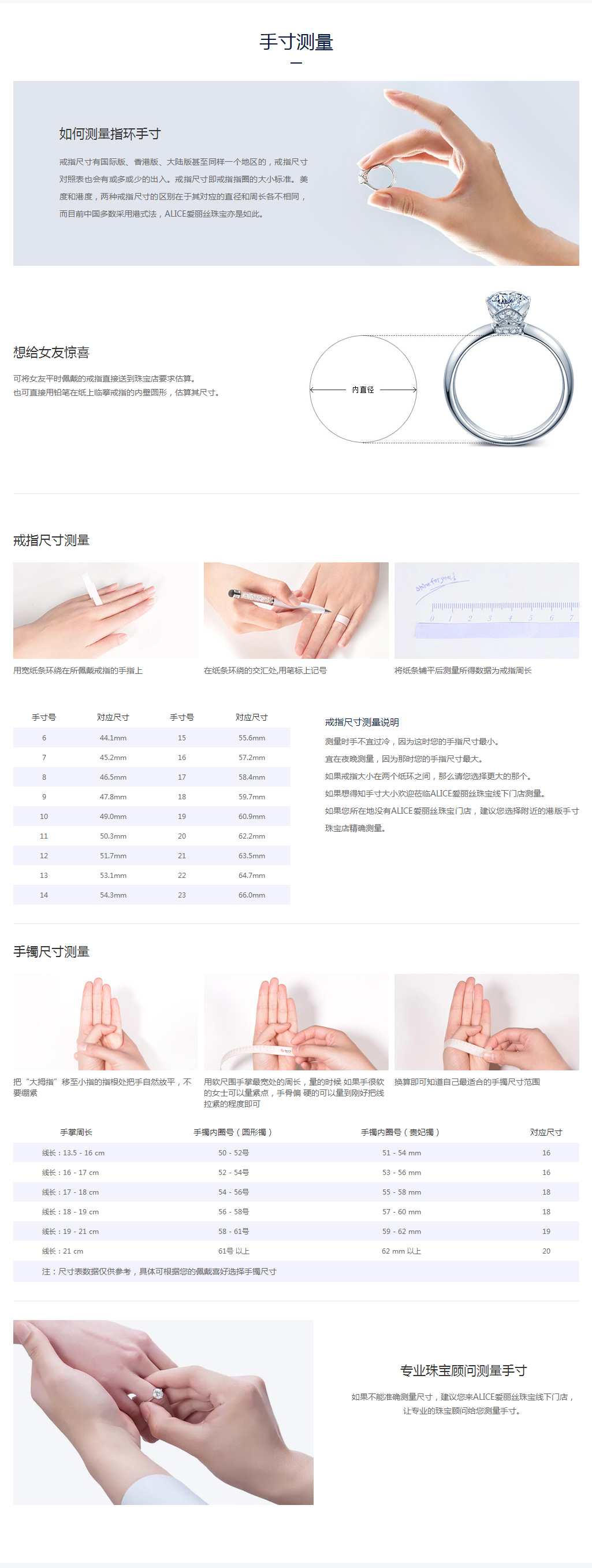 很多小伙伴在挑选戒指时都不知道选多大尺寸的,今天ALICE爱丽丝珠宝就带大家一起了解一下如何测量手寸